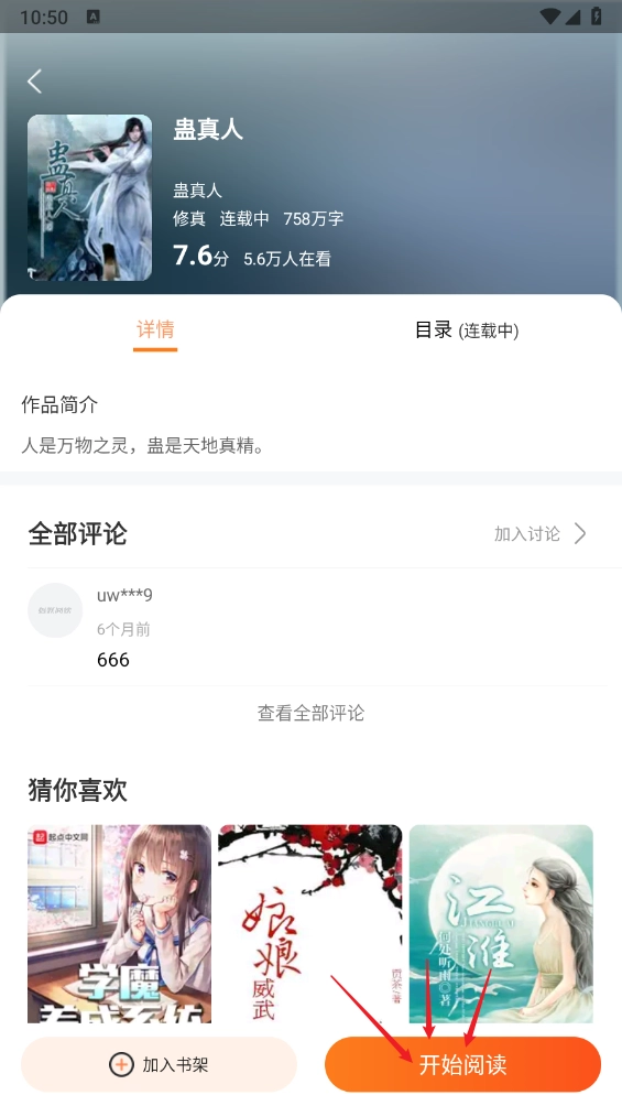 2、进入小说阅读详情页后点击"开始阅读"。
