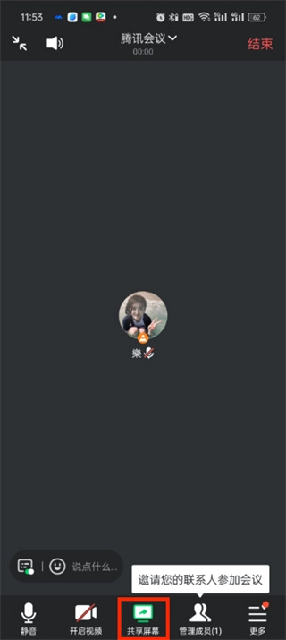 3、打开软件,进入会议页面点击"共享屏幕"。