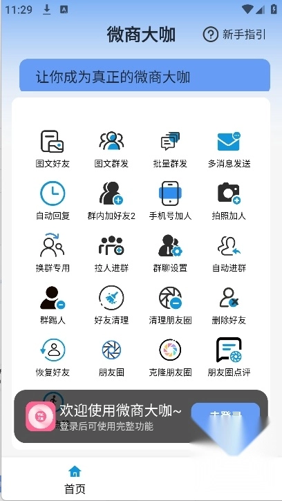 1、微商大咖的功能不仅限于微商营销,其中的内存清理、批量水印、图文群发等功能,对于日常手机使用和其他行业从业者也同样具有实用性。