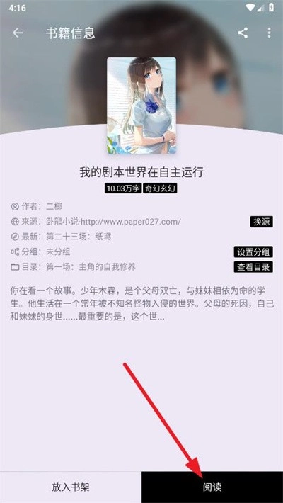 2、在小说详情页点击"阅读"按钮。