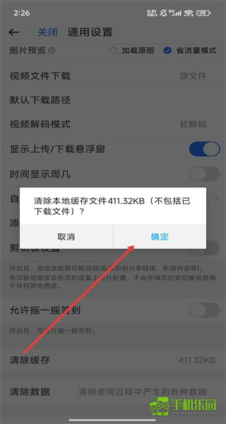 4、在通用设置页面中点击清除缓存选项后,通过点击弹窗中的确定按钮,即可完成清除操作。