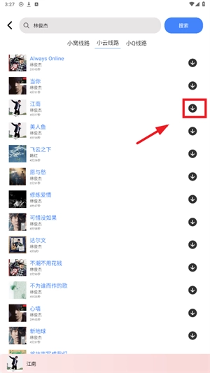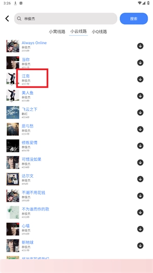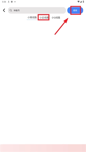 3、输入想要查找的歌曲或歌手名称,挑选合适的线路,然后点击搜索。