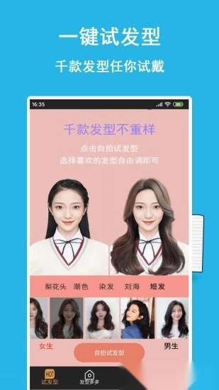 这是一款能帮你快速找到适配自身头型的发型设计软件,平台上有数千款不同风格的发型可供自由选择,通过不同的搭配组合,能让你展现出更美的一面。软件还具备智能美颜、百变试装、智能整容等实用功能。