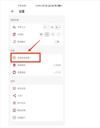2、点击朗读设置按钮,即可跳转到朗读设置页面