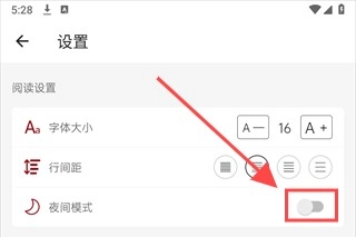 3、进入设置界面,点击夜间模式后方的【开关】即可完成设置
