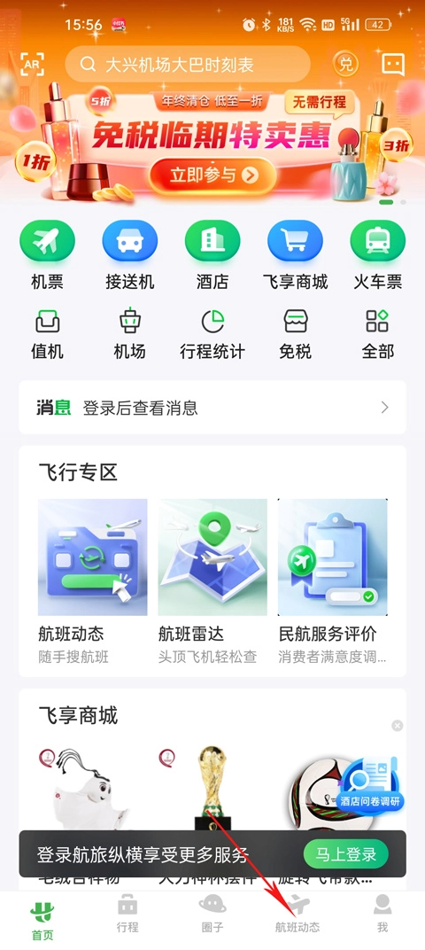 2、在首页右下角找到航班动态,进入航班动态页面;