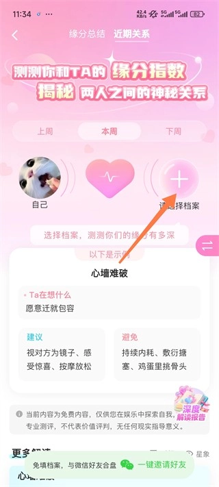 5、之后就可以看到近期关系和缘分总结的内容