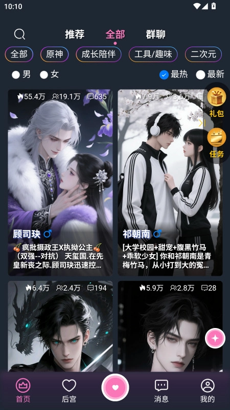 2、狼系乳犬、温柔霸总等设定可供选择,用户也能自定义AI角色,打造专属的虚拟合作伙伴。