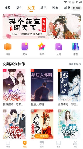 4、书库分类十分精细,你可以先选择男生或女生频道,接着挑选小说类型,就能得到专属的推荐内容。