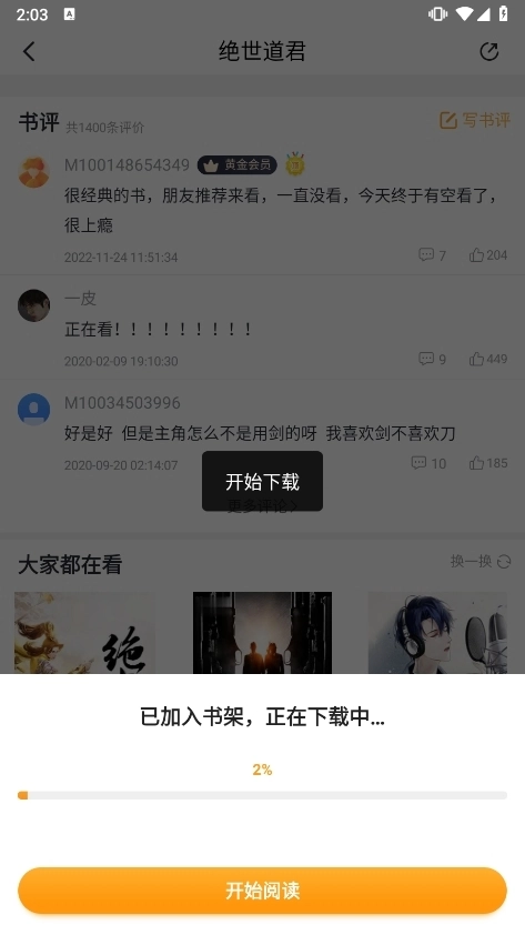 4、打开并进入书籍详情页,这里包含了小说的全部信息,点击“阅读”即可进入阅读界面。
