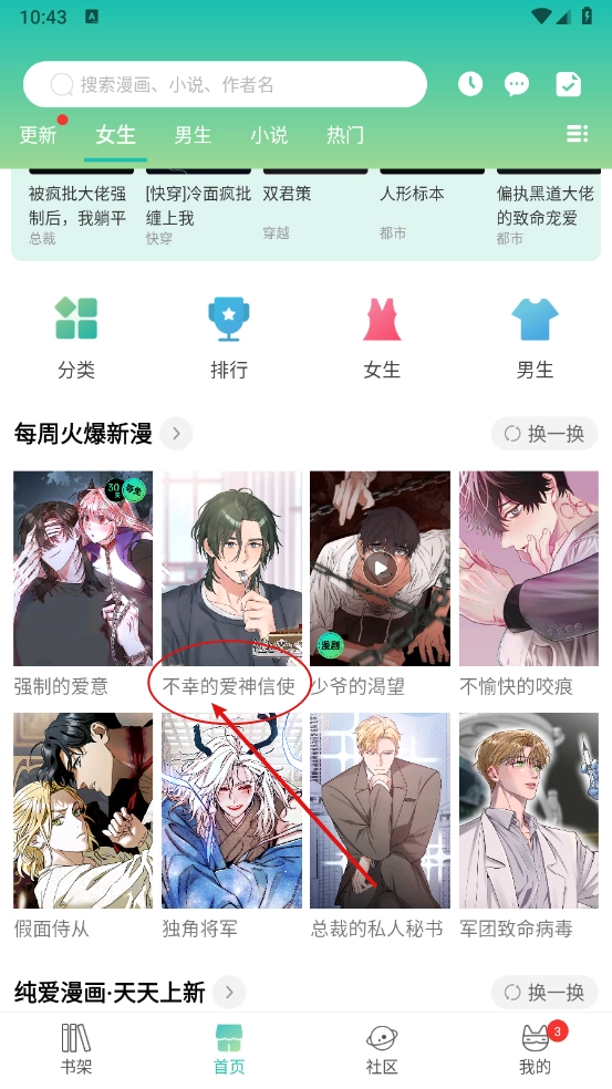 1、在本站的软件,进入首页,选择需要收藏的漫画。