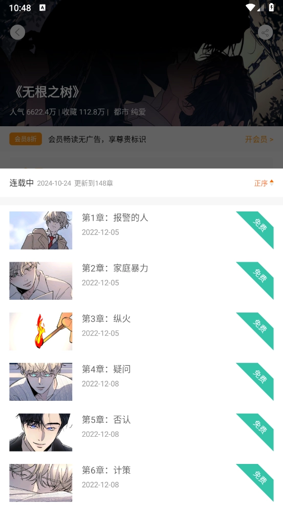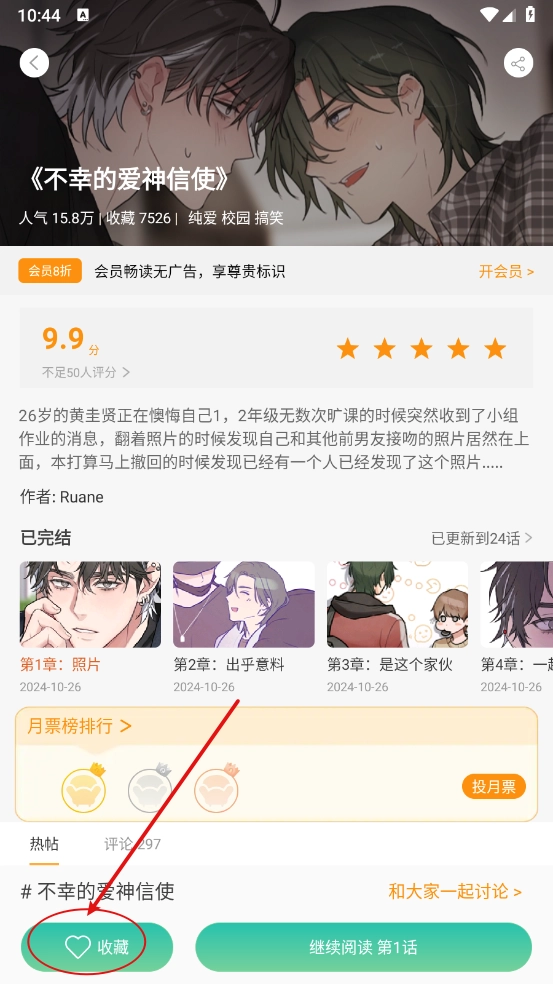 2、一键进入漫画详情页,点击左下角的“收藏”按钮即可完成收藏。
