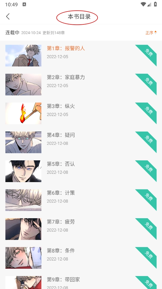4、进入后就能查看本书的全部目录了。