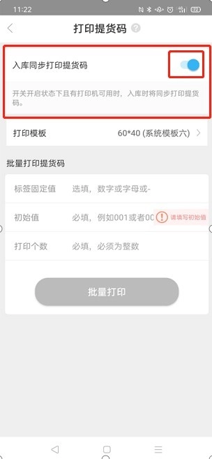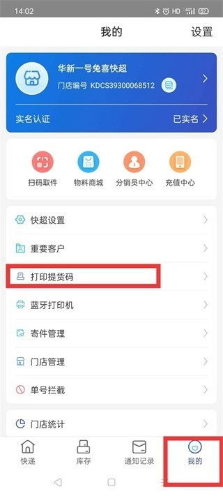 2、开启入库同步打印提货码功能,连接好打印机后,当包裹完成入库操作时,系统会自动打印出该包裹对应的提货码,将其张贴到包裹上就可以了。