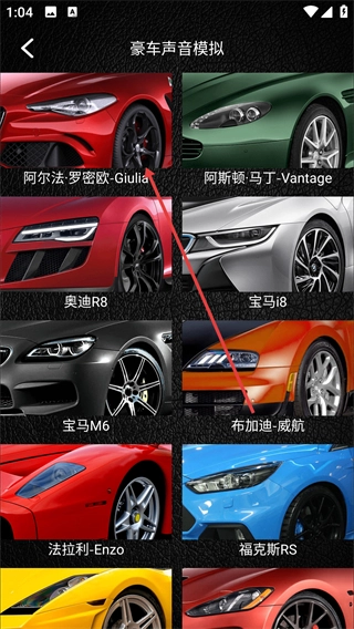 2、在豪车声音模拟界面选择目标豪车,如“阿尔法·罗密欧-Giulia”。