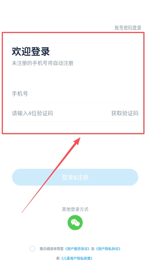 1、第一步是完成登录注册流程,打开软件后选择账号密码登录方式,勾选同意用户服务协议与隐私政策等相关选项,在此之前建议先认真阅读协议内容。