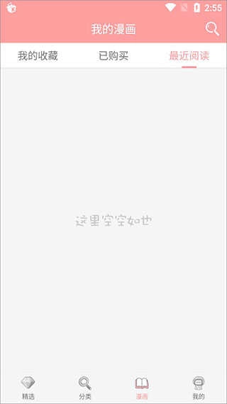 4、在漫画这里,可以查看有关我的收藏、已购买、最近阅读的漫画;