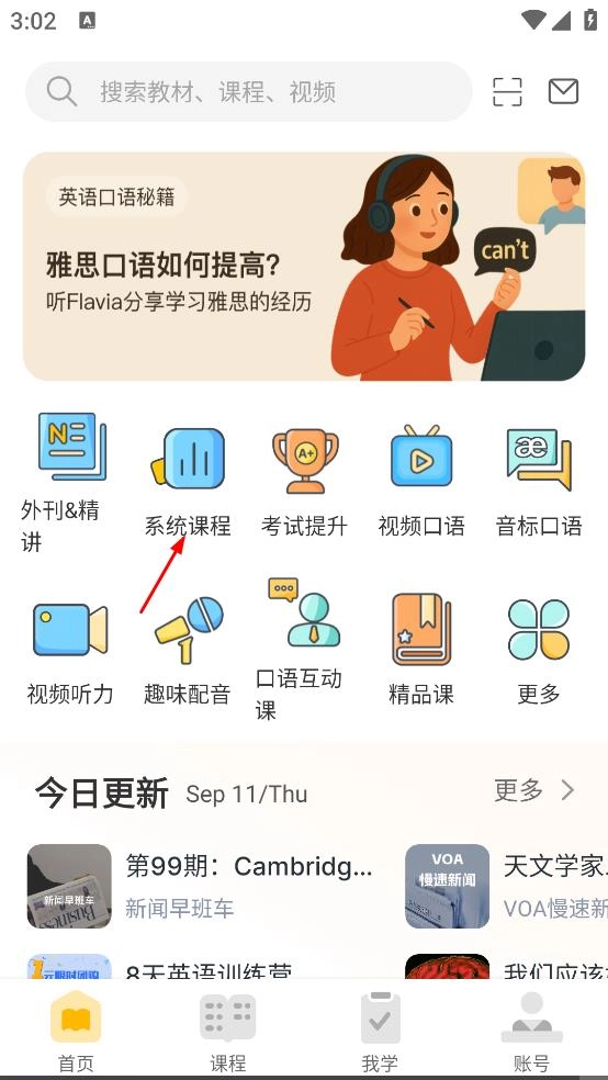 2、在懒人英语主界面,点击系统课程,进入系统课程学习。