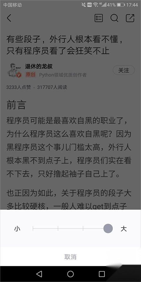 接着就可以通过手指左右滑动小圆图标进行字体调整,此时页面也会随着滑动而变化字体大小