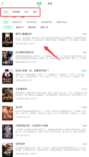 2、通过分类筛选或榜单推荐,选择感兴趣的小说查看简介和读者评分。