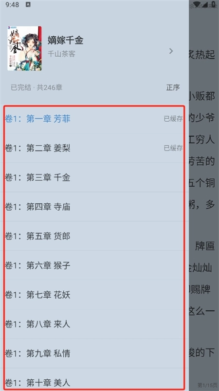 4、进入之后就可以直接查看完整的目录章节了