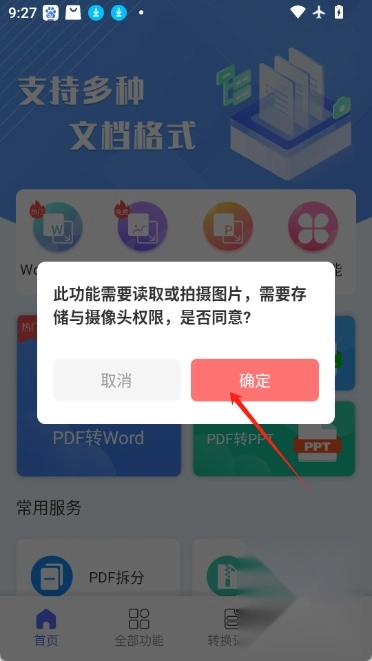 2.点击选择文档(图片转pdf,需要先获取存储与摄像头权限)