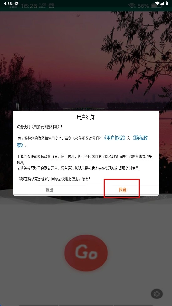 1、点击【同意-功能按钮】,确认《用户协议》和《隐私政策》。