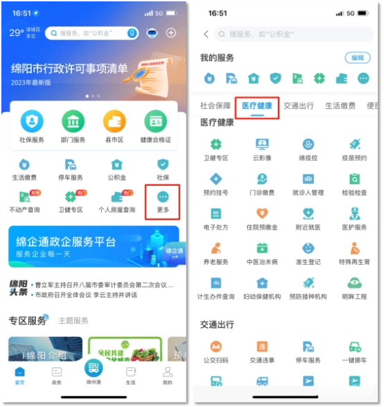 打开“i绵阳”应用,点击“更多”选项,在医疗健康板块中即可实现一键预约挂号。