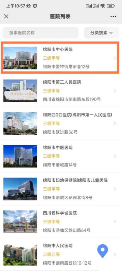 选择医院与科室。就医前先预约,看病无需等待。市民能够借助i绵阳,在全市范围内挑选40多家医院、科室以及医生,提前完成预约挂号。