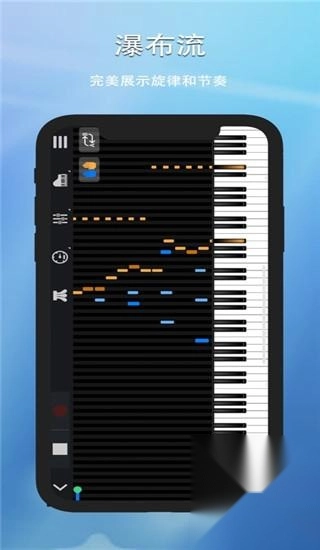 3. 借助瀑布特效技术,将钢琴音乐的旋律选择与节奏变化进行完美呈现,以瀑布般的视觉形式让钢琴演奏过程更具趣味性。