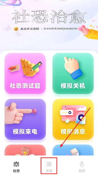 1、打开社恐治愈器,点击【宝箱】;