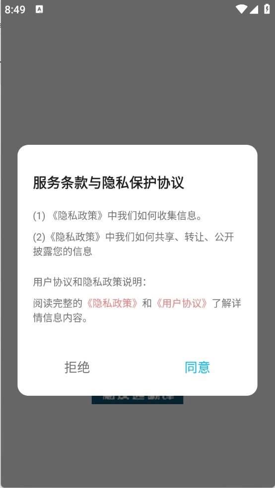 1、首先用户需要在本站完成藏汉通翻译服务的使用,查看并同意隐私政策与用户协议。