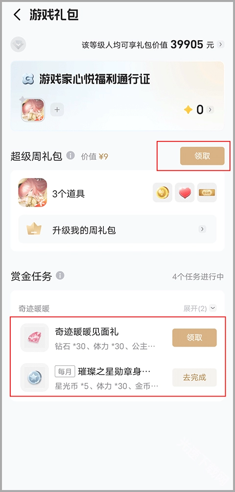 4、绑定成功后,点击页面上的“开启通行证”按钮,在下方即可领取礼包。