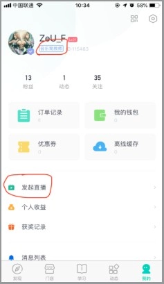 在确认自己已成为音乐窝认证教师后,就可以通过音乐窝 > 我的 > 发起直播这个路径来开启直播。