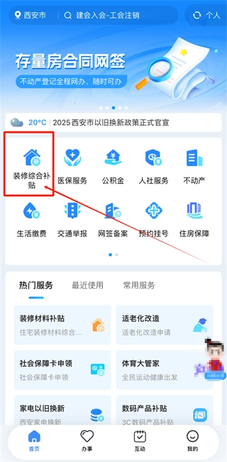 1、首先并进入i西安,点击【装修综合补贴】进入;