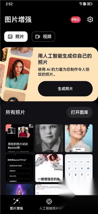 1、在本站好Remini照片修复软件,打开进入授权图库,并选择你需要修复的照片;