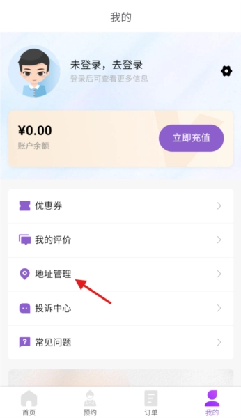 2、进入“我的”界面后,向下滑动页面,找到“地址管理”选项并轻点进入。