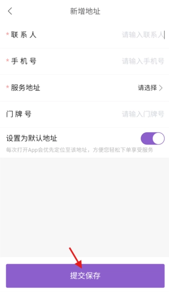 4、请按顺序填写详细地址、联系人、联系电话等信息,仔细核对确保准确无误后,点击“提交保存”按钮。