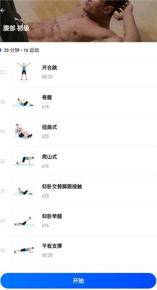 4、选择你想要重点锻炼的身体部位,像腹肌、手臂或者腿部都可以,点击【开始】按钮就能开启针对该部位的专属训练。