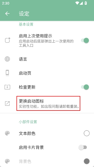 4.在设定界面中,找到并点击“更换启动图标”。