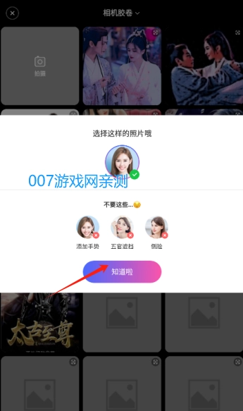 3、按照软件中的要求去选择不同的照片来进行美化修图