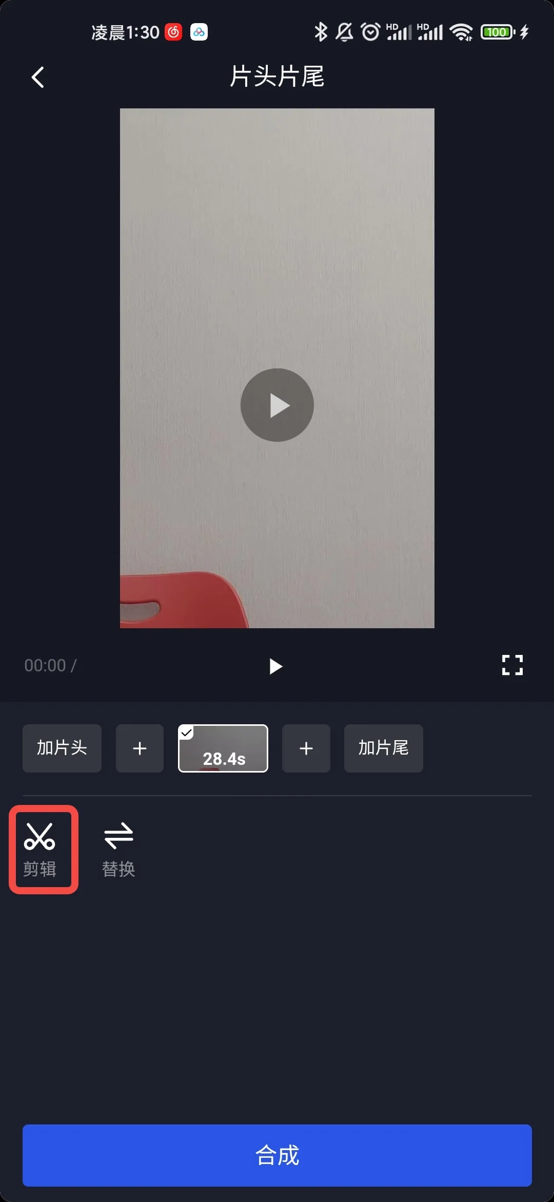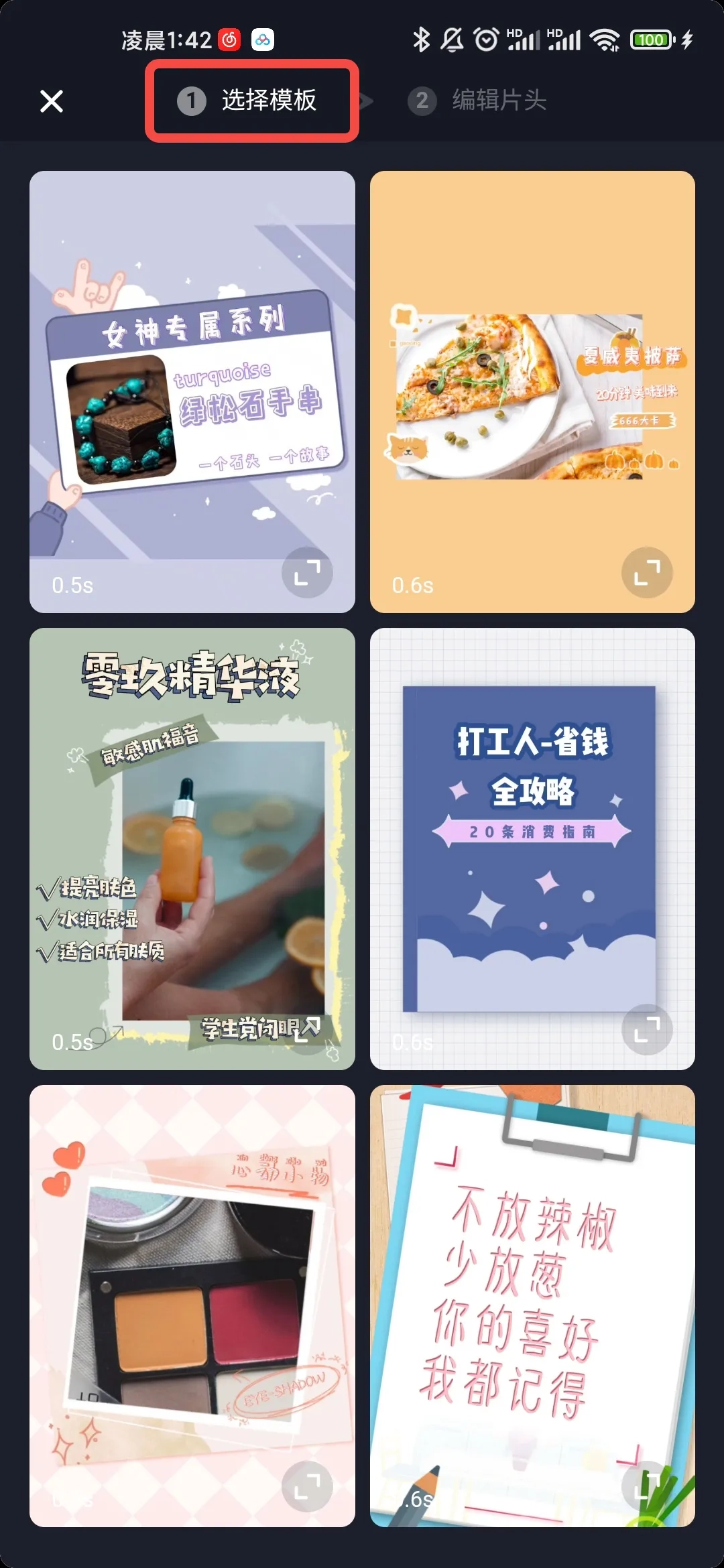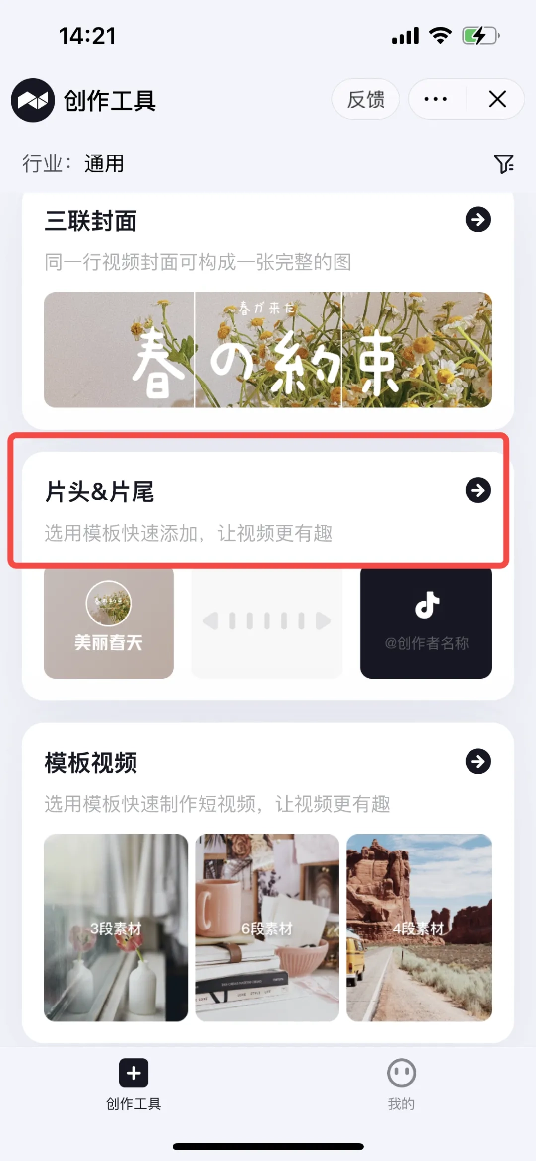 点击“片头&片尾”板块,从相册中选择一支视频开始制作。