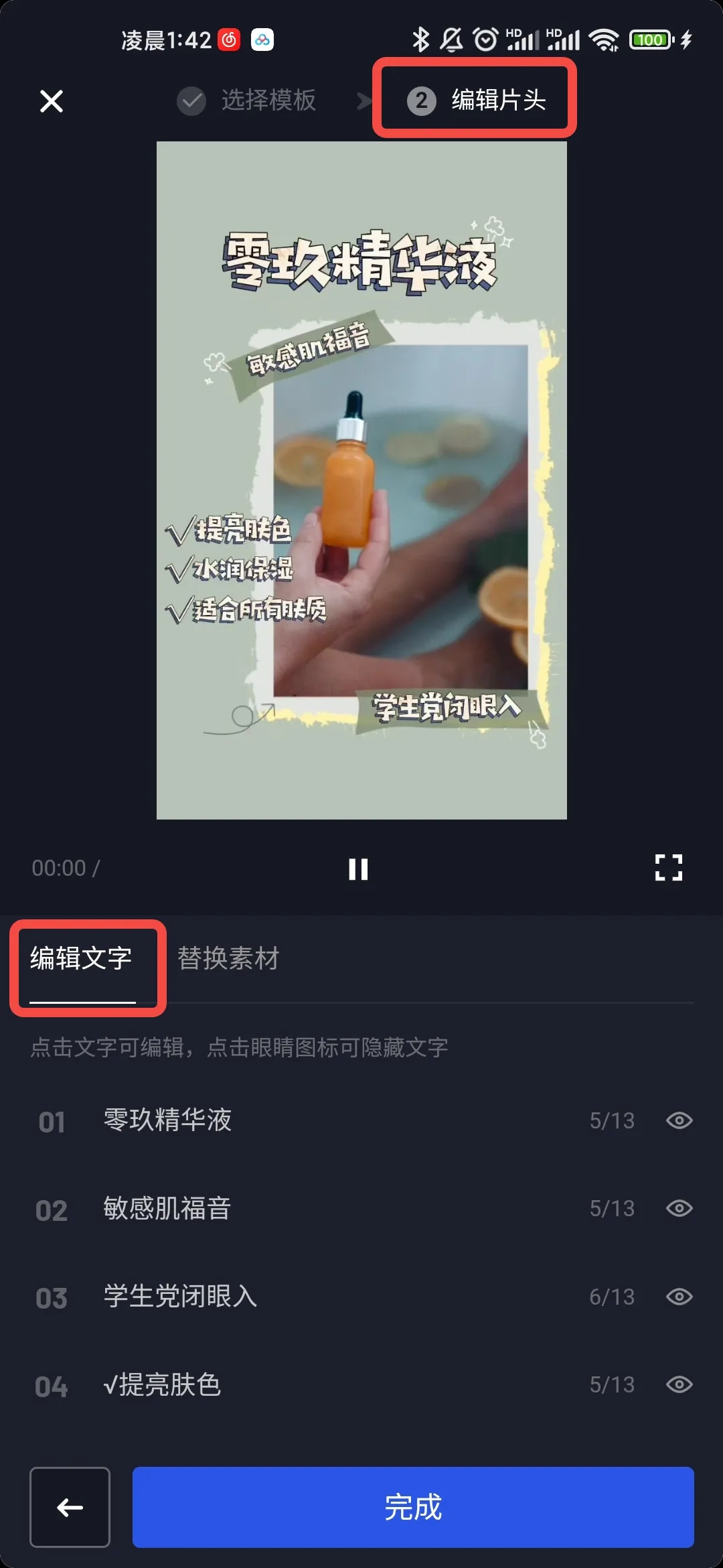 在“编辑片头”板块里完成文字编辑,接着从相册选取一段视频素材添加到片头模板中,最后点击“完成”按钮就可以了。