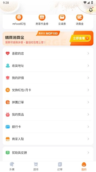 mFood如何购买消费金和开通月卡