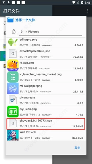 ●选择书源文件所在的路径,并选择书源;