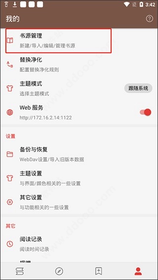 ●我的-点击"书源管理”;