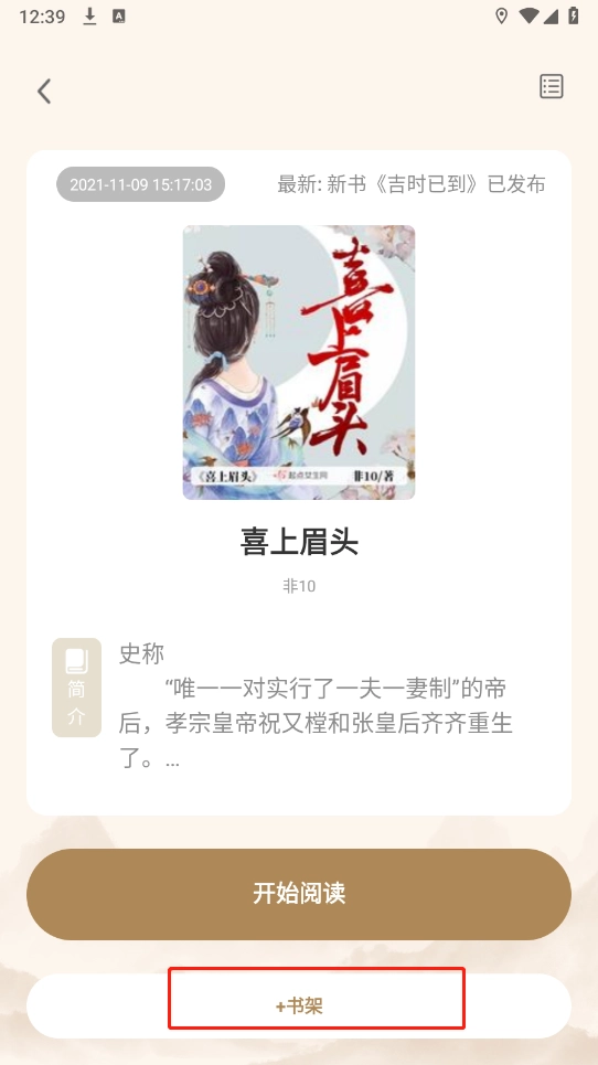 2、选好之后,进入小说页面,点击下方的“加入书架”按钮。