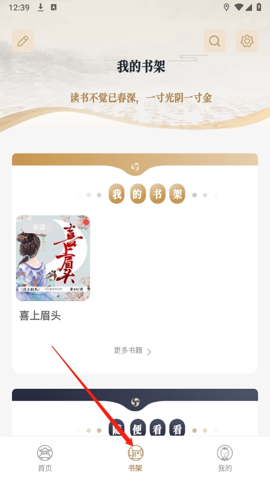 3、把书籍加入书架后,返回首页,点击页面下方的“书架”按钮,就能看到已加入的内容了。