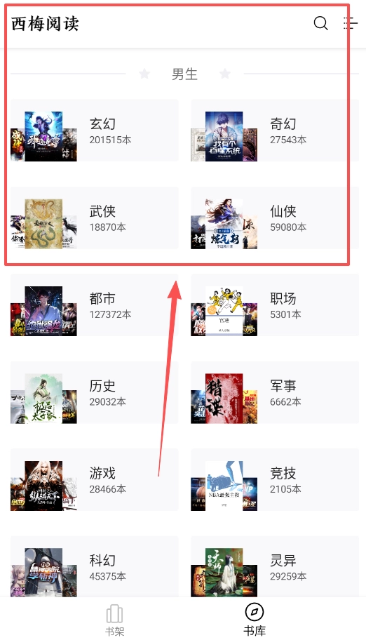 2、海量书库是它的突出优势,书籍被细致地划分为玄幻、武侠、科幻、灵异等数十个类别。