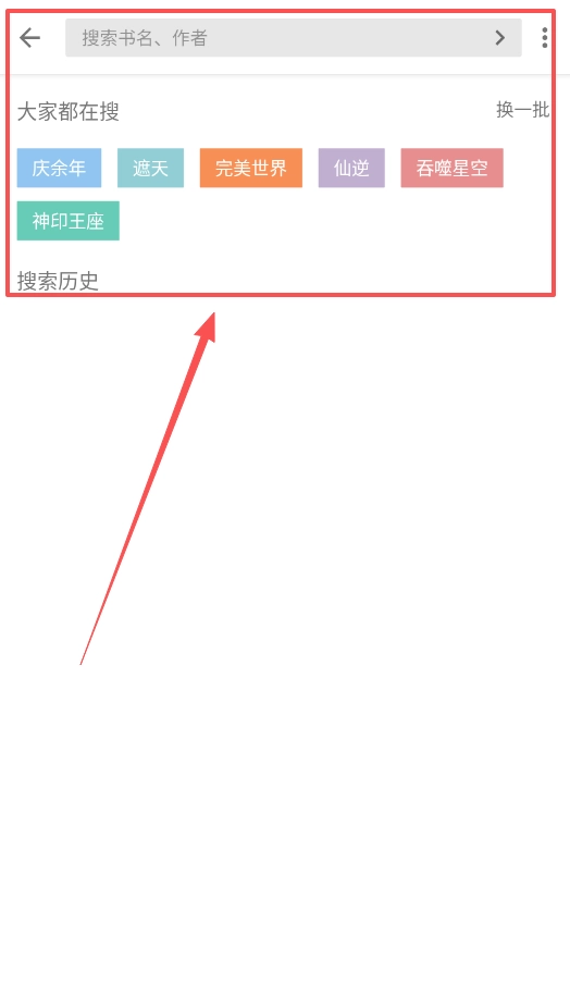 3、搜索功能融合了主动查找与被动推荐两种模式,除了直接输入关键词搜索外,建议多留意“大家都在搜”板块,还可以点击“换一批”按钮刷新内容,这样就不用担心找不到想看的书啦。